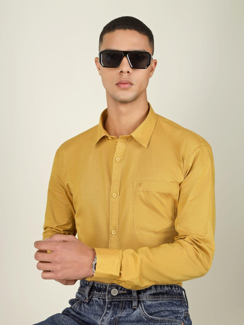 Shop / Shirt / Mens / Cotton Linen Shirts / Amber Orange Cotton Linen Shirt